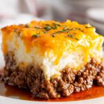 - Add mashed potato layer: Carefully spoon or spread the prepared mashed potatoes over the beef mixture, covering it completely and evenly.