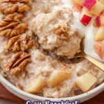 Spoon the thickened oatmeal into bowls, then top generously with the sautéed apples. Add a dollop of plain Greek yogurt and sprinkle some walnuts on top for crunch. I love how the creamy tang of yogurt cuts through the sweetness — it really balances the flavors.