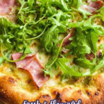 This Arugula and Prosciutto Pizza features a crispy thin crust topped with a savory garlic and rosemary olive oil sauce, melted mozzarella and Parmesan cheeses, delicate slices of prosciutto, and a fresh, peppery arugula salad dressed with lemon juice. A perfect blend of savory and fresh flavors baked to perfection on a high-heat baking steel.