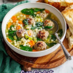 Italian Wedding Soup is a hearty and comforting soup featuring homemade browned mini meatballs, fresh vegetables, and tiny pasta bits, all simmered in a rich low-sodium chicken broth. This classic Italian recipe combines vibrant flavors of fresh herbs, parmesan, and spinach for an authentic and fresh taste experience.