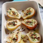 - Assemble the Appetizer: Arrange the pear pieces on a serving platter. Crumble or slice the gorgonzola cheese and evenly distribute it over the pears.