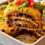 A hearty and flavorful Beef Enchilada Casserole featuring layers of seasoned ground beef, black beans, green chiles, and a blend of cheddar and Monterey Jack cheeses. This easy-to-make casserole is topped with fresh avocado, tomato, cilantro, and jalapeno for a perfect balance of savory and fresh flavors. Ideal for a comforting dinner, this dish combines classic Mexican-inspired ingredients baked to cheesy perfection.
