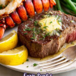 - Serve: Arrange the filet mignons and lobster tails on individual plates, top each filet with a pat of compound butter, and garnish with fresh lemon wedges for squeezing.