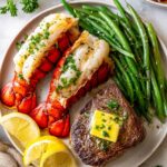 - Serve: Arrange the filet mignons and lobster tails on individual plates, top each filet with a pat of compound butter, and garnish with fresh lemon wedges for squeezing.