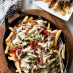 This Philly Cheesesteak Fries recipe combines crispy crinkle-cut fries topped with savory, caramelized ribeye steak, sautéed green bell peppers and onions, and a rich, creamy cheese sauce made from white American and parmesan cheeses. Perfect as a hearty snack or indulgent meal, this dish offers the classic flavors of a Philly cheesesteak in a fun, shareable form.