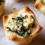 - Fill cups: Spoon heaping teaspoons of the spinach artichoke filling into each puff pastry cup until filled to the top.