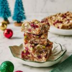 Delight in these festive Cranberry White Chocolate Blondies, combining tart fresh cranberries, sweet white chocolate, and crunchy pistachios in a chewy, golden treat perfect for the holidays.