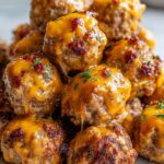 Delicious and creamy Cream Cheese Sausage Balls made with hot pork sausage, cream cheese, Bisquick baking mix, and cheddar cheese. Perfect as a savory appetizer or snack that's easy to prepare and bake.