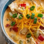 - Combine and serve: Return the shredded chicken to the pot, stir to incorporate, and serve the soup immediately. Optionally, top with green onions, sharp cheddar cheese, and extra hot sauce for added flavor and garnish.
