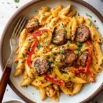 One Pot Creamy Cajun Sausage Pasta is a rich and flavorful dish combining spicy andouille sausage, sautéed bell peppers and mushrooms, and tender gluten-free penne pasta in a creamy Cajun-seasoned sauce. This easy weeknight dinner comes together quickly in one skillet, offering a perfect balance of spice and creaminess with customizable heat and texture.