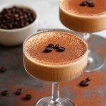 A creamy, easy-to-make Espresso Martini Mocktail that combines rich espresso with cinnamon simple syrup and a smooth creamer, shaken to a frothy perfection and garnished with cacao powder and coffee beans for an elegant non-alcoholic treat.