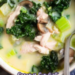 This creamy paleo chicken soup is a comforting and flavorful dish made with tender chicken thighs, earthy mushrooms, fresh kale, and aromatic herbs. It features a dairy-free, Whole30-compliant coconut milk base thickened with arrowroot starch for a velvety texture. Perfect for a nourishing weeknight meal, this soup is packed with wholesome ingredients and cozy seasonings.