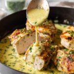 Creamy Skillet Pesto Chicken is a luscious and decadent dinner recipe featuring tender chicken breasts cooked in a fragrant basil pesto cream sauce, topped with melted parmesan cheese and fresh herbs. Ready in under 30 minutes, it's a perfect flavorful meal for busy weeknights.