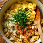 Oyakodon is a classic Japanese chicken and egg rice bowl featuring tender chicken thigh pieces simmered with onions in a savory dashi-based sauce and topped with softly cooked eggs. This comforting one-bowl meal is simple to prepare, richly flavorful, and perfect for a quick lunch or dinner.