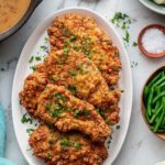 - Serve: Serve the chicken fried steaks hot, smothered with white gravy. Garnish with chopped parsley and red pepper flakes if desired.