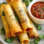 Crispy on the outside and creamy, cheesy on the inside, these chicken taquitos are a delicious Mexican-inspired snack or appetizer that can be baked, pan-fried, or air-fried to perfection. Filled with seasoned shredded chicken, cheese, and salsa, they are perfect for serving with guacamole, sour cream, or fresh salsa toppings.