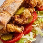 - Assemble the Po' Boys: Spread a generous layer of the remoulade sauce on the inside of each loaf. Layer the fried shrimp evenly on the bread, then top with shredded iceberg lettuce, sliced tomatoes, and dill pickles.