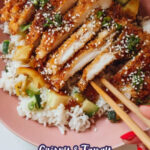 To reheat, I like popping the chicken in an oven or toaster oven at 350°F for about 10 minutes to bring back the crisp. Warm the sauce gently on the stove or microwave, then drizzle it over the chicken and rice just before serving.
