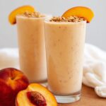 A refreshing and creamy Peach Smoothie made with fresh peaches, banana, skimmed milk, light coconut milk, Greek yogurt, and a touch of honey for natural sweetness. Perfect for a nutritious breakfast or a revitalizing summer snack.