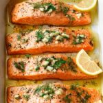 - Garnish and serve: Remove the salmon from the oven, then sprinkle fresh chopped parsley and dill on top. Garnish with lemon slices before serving for an extra burst of freshness.