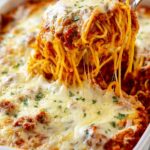 Million Dollar Spaghetti is a rich and creamy baked pasta dish combining al dente spaghetti noodles with flavorful ground beef meat sauce and a luscious homemade alfredo sauce, topped with melted mozzarella and parmesan cheeses. This comforting dinner is perfect for family meals and guaranteed to impress with layers of cheesy goodness and savory seasoning.