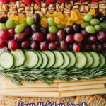Freezing isn’t ideal for this board because fresh fruits and cucumbers lose their texture. However, you can freeze uncooked cheeses and meats separately if you plan to assemble later.