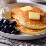 I usually store leftover pancakes in an airtight container in the fridge for up to 3 days. I place parchment paper between them so they don’t stick together — it saves time and headaches when reheating.