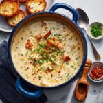 Garlic Parmesan Chicken Chowder is a rich and comforting soup loaded with tender seasoned chicken, pasta, and a creamy garlicky cheese broth. Perfect for a cozy weeknight dinner, this chowder combines savory flavors with a hearty texture and can be made in just over 30 minutes.