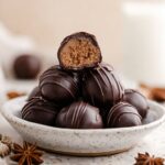 - Coat with Chocolate: Dip each ball into the melted chocolate, using a fork to lift and gently tapping off excess chocolate before placing on a tray.