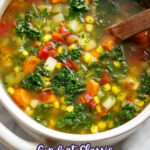 This hot and comforting vegetable soup is a cozy bowl filled with healthy, vibrant vegetables simmered in a rich broth with aromatic herbs and a hint of lemon.
