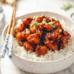 Steamed rice is the classic choice, but you can also serve it over noodles, grain bowls like quinoa, or alongside stir-fried or steamed veggies like broccoli, snap peas, or bok choy to round out the meal.