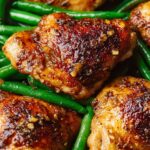 A flavorful one-skillet meal featuring tender lemon garlic butter chicken thighs paired with crisp steamed green beans, all coated in a rich, savory pan sauce. This low-carb, keto-friendly dish is quick to prepare and perfect for a nutritious dinner.
