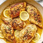 - Finish and serve: Return the chicken to the skillet, spoon the lemon garlic butter sauce over the top, and sprinkle with lemon zest. Garnish with chopped parsley and lemon slices if desired, then serve immediately.