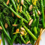 A vibrant and flavorful side dish featuring sautéed broccolini and green beans infused with lemon and garlic, topped with sweet currants and crunchy toasted almonds. This delightfully crisp-tender vegetable medley is quick to prepare and perfect for any meal.