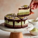 This decadent No Bake Dubai Chocolate Cheesecake features a rich chocolate cookie crust, a crunchy pistachio knafeh layer, and a creamy chocolate cheesecake filling topped with luscious pistachio cream. Perfect for those craving a luxurious dessert without baking.