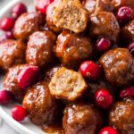 Delicious slow cooker cranberry jalapeno meatballs combine spicy, sweet, and savory flavors for a perfect festive appetizer or main course. Made with ground beef and a flavorful blend of spices, these meatballs are cooked slowly with fresh cranberries and BBQ sauce for a tender and rich dish that's easy to prepare and sure to impress.