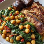 A vibrant and flavorful spicy chickpeas dish cooked with tomatoes, fresh spinach, and aromatic spices. This easy-to-make skillet meal is perfect for a nutritious lunch or dinner and delivers a healthy protein-packed vegetarian option with a hint of heat.