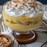This Passionfruit Trifle is a rich and decadent dessert featuring layers of boozy ladyfingers soaked in cachaça, rum, or pisco, topped with tangy passionfruit curd, creamy coconut and passionfruit pudding, and fluffy whipped cream. Perfect for special occasions or a tropical treat.