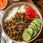 These Spicy Sesame Ground Beef Bowls offer a flavorful and easy-to-make meal with a perfect balance of sweet, savory, and spicy notes. Featuring ground beef cooked in a zesty sesame sauce made from coconut aminos, coconut sugar, and toasted sesame oil, this dish is quick to prepare and ideal for serving over rice, pasta, potatoes, or fresh lettuce.