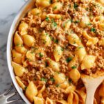 This one-pot Taco Pasta recipe combines rich, cheesy flavors with classic taco seasoning to create a hearty and comforting meal. Ground beef, tender pasta shells, and a blend of cheeses cooked together in a flavorful tomato and broth sauce make it an easy and satisfying dish perfect for busy weeknights.