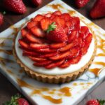 Delight in these elegant Strawberry White Balsamic Caramel Tarts featuring buttery tart shells filled with luscious whipped cream, drizzled with rich white balsamic caramel, and topped with fresh strawberry slices. Perfect for a sophisticated dessert or special occasion.