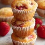 Delight in these classic Strawberry Shortcake Muffins, featuring a moist and tender crumb bursting with juicy strawberry pieces. Topped with a sprinkle of sugar for a sweet, crisp finish, these muffins are perfect for breakfast or a quick snack during strawberry season.
