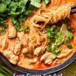 A flavorful and comforting Thai Red Curry Noodle Soup featuring tender chicken, vibrant vegetables, and aromatic herbs simmered in a creamy coconut and red curry broth served with rice noodles.