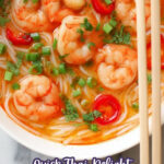 A flavorful and easy one-pot Thai Shrimp Soup with Noodles combining creamy coconut milk, aromatic Thai red curry paste, fresh shrimp, and tender rice noodles for a quick and satisfying meal.