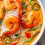 A flavorful and easy one-pot Thai Shrimp Soup with Noodles combining creamy coconut milk, aromatic Thai red curry paste, fresh shrimp, and tender rice noodles for a quick and satisfying meal.