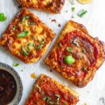 These Upside Down Puff Pastry Pizza Tarts offer a crispy, golden puff pastry exterior encasing a flavorful pepperoni, garlic, and mozzarella pizza filling. Finished with a drizzle of sweet chilli jam and fresh chopped basil, they are perfect as a quick party snack, lunch, or appetizer packed with gooey, oozy, and savory flavors.