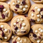 Soft-Baked White Chocolate Cranberry Cookies are wonderfully chewy and packed with sweet white chocolate chips and tart dried cranberries. These cookies are made with a buttery dough, enhanced by extra vanilla flavor, and are chilled before baking to achieve the perfect soft texture and prevent over-spreading.